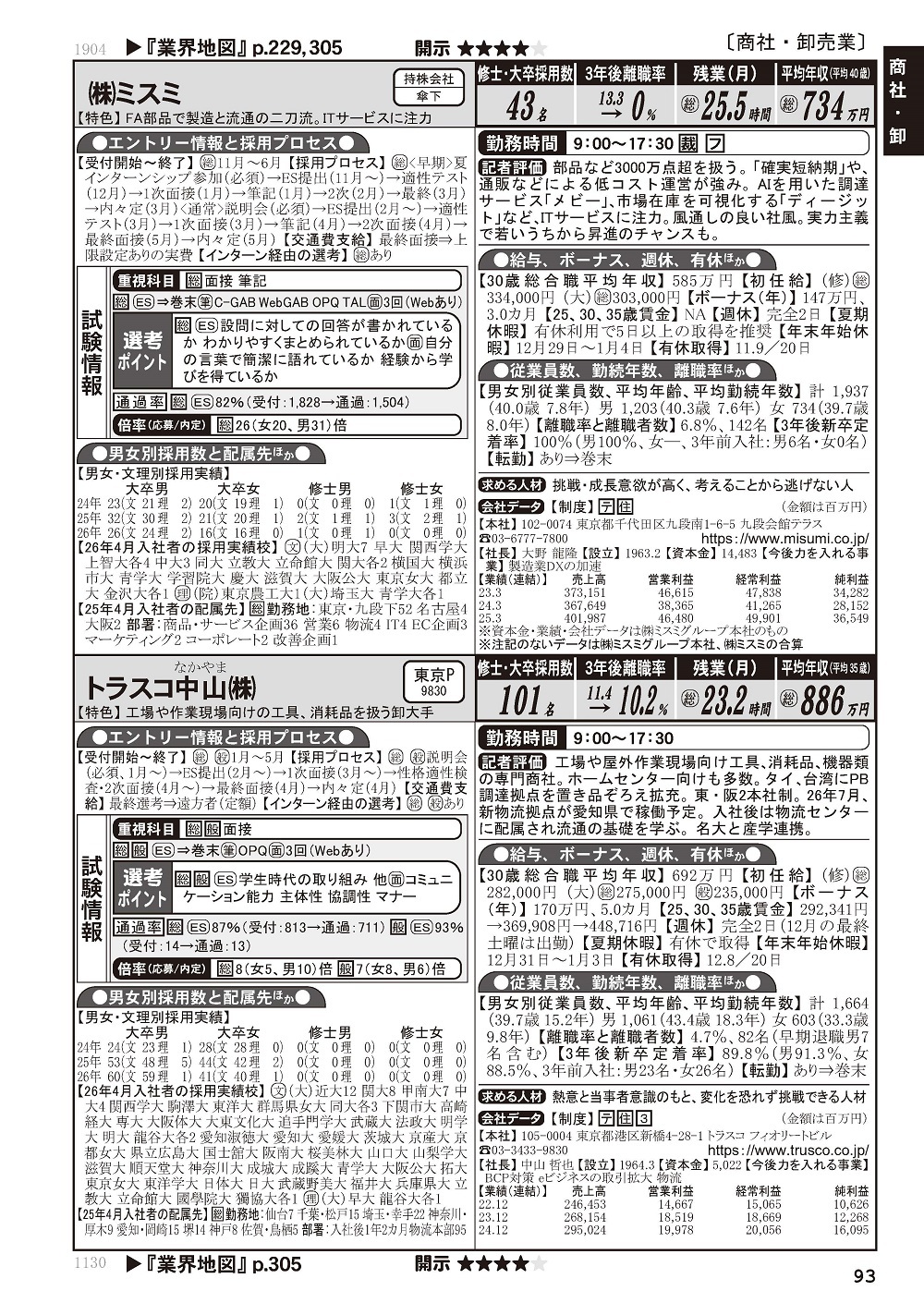 企業から掲載料を受け取らず、客観的・中立的な立場から作られたデータブック。編集部が厳選した各業界の人気・大手企業約1300社について、独自調査で収集したデータを掲載しています。